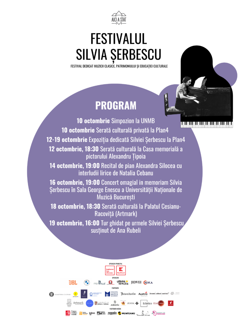Organizat de Asociația culturală „Aici A Stat” și susținut de Kaufland România, Festivalul Silvia Șerbescu este o celebrare a excelenței muzicale, a reperelor culturale și un proiect cu deschidere socială și educațională. O parte din locurile disponibile la evenimente sunt oferite gratuit persoanelor cu dizabilități, beneficiarilor din centre sociale și elevilor de la liceele de muzică, pentru ca arta și patrimoniul să fie accesibile tuturor. Detalii și programul complet al festivalului se află aici: https://aiciastat.ro/festivalul-silvia-serbescu/.