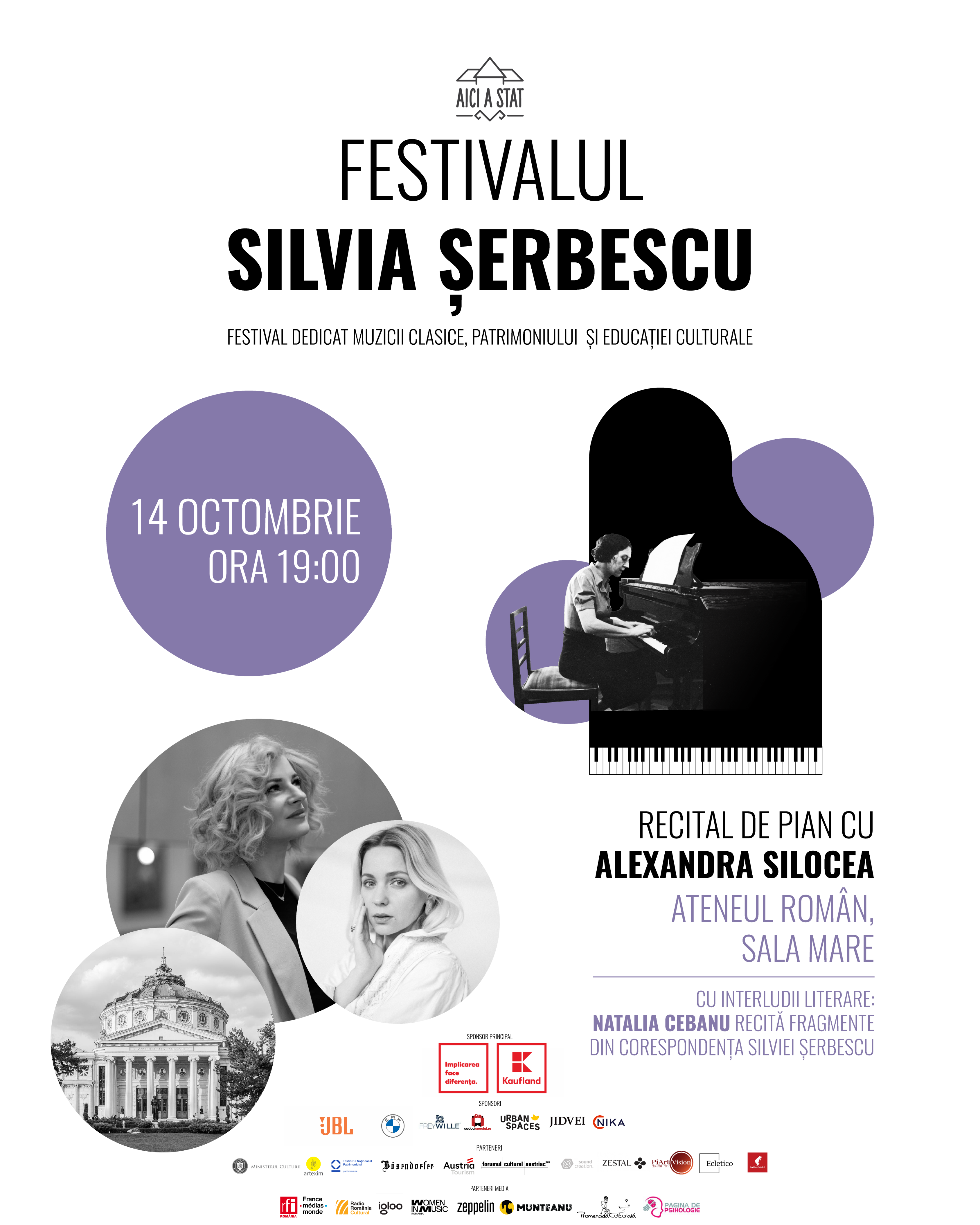 Asociația culturală Aici A Stat vă invită la un recital de pian la Ateneul Român parte din Festivalul Silvia Șerbescu unde muzica clasică se va împleti cu fragmente despre viața Silviei Șerbescu și din corespondența marii pianiste. Festivalul Silvia Șerbescu este dedicat anului comemorativ Silvia Șerbescu – 60 de ani, în onoarea uneia dintre cele mai influente pianiste ale secolului XX din România, o figură vizionară, talentată, inconfundabilă.